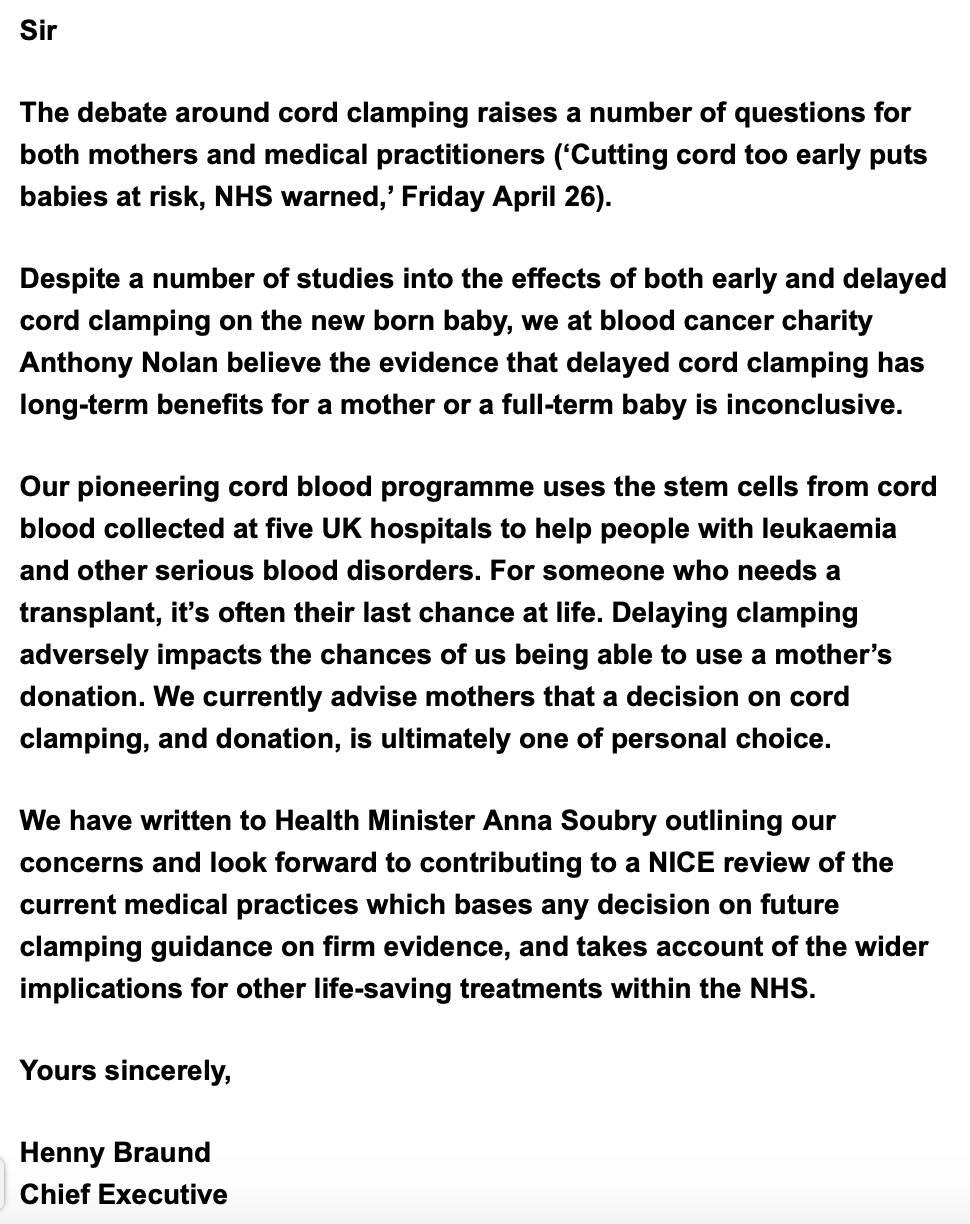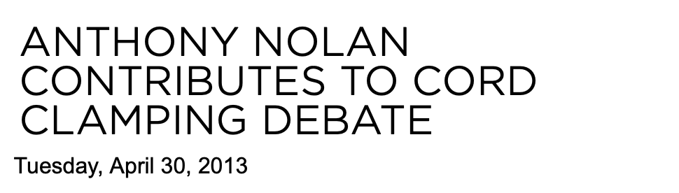 Make of this what you will but I feel it particularly unethical that Antony Nolan has not provided any further update to this blog post or written any other blog posts about delayed cord clamping particularly since the recommendations made in the 2014 National Institute of Health and Care Excellence guidelines in support of delayed cord clamping.